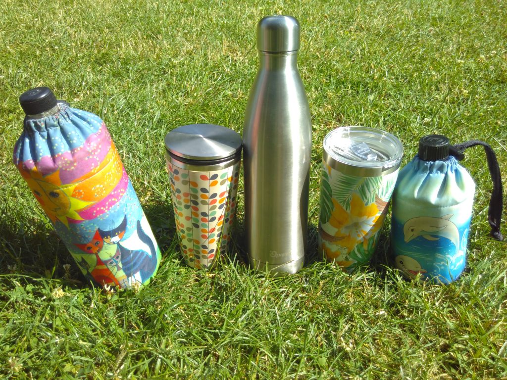 Ein wichtiger Schritt war kein Wasser in Flaschen, weder Plastik noch Glas zu kaufen, sondern das Wasser aus dem Wasserhahn zu trinken. Das Trinkwasser in Luxemburg ist von guter Qualität, braucht keine zusätzliche Verpackung, kostet weniger als in Flaschen abgefülltes Wasser und schlägt nicht noch mit Transportwegen zu Buche. Für unterwegs schafften wir uns nach und nach Trinkflaschen in unterschiedlichen Größen aus Edelstahl an. Die ältesten haben wir sechs Jahre im Gebrauch, manche etwas zerbeult, aber noch immer gut. Die ersten Flaschen haben wir im Internet bestellt. Mittlerweile gibt es aber in Luxemburg einige Läden, wo man diese beziehen kann: Sweetcotton, Lilynatur, Naturata, alavita, ouni, ons Epicerie….. (Reihenfolge hat keine Bedeutung und wir bekommen kein Geld für die Werbung)
